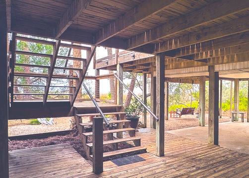 All decks have recently been renovated and expanded so you can get a commanding view of your surroundings. Upper decks let out from the living room and master bedroom. Perched in the treetops, the upper decks offer gorgeous views of Apalachicola Bay. Peak over to see the lush plants below.